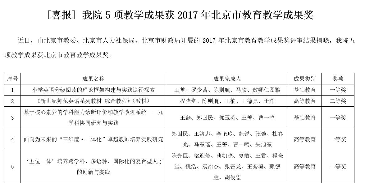 [喜报] 台湾色情 5项教学成果获2017年北京市教育教学成果奖