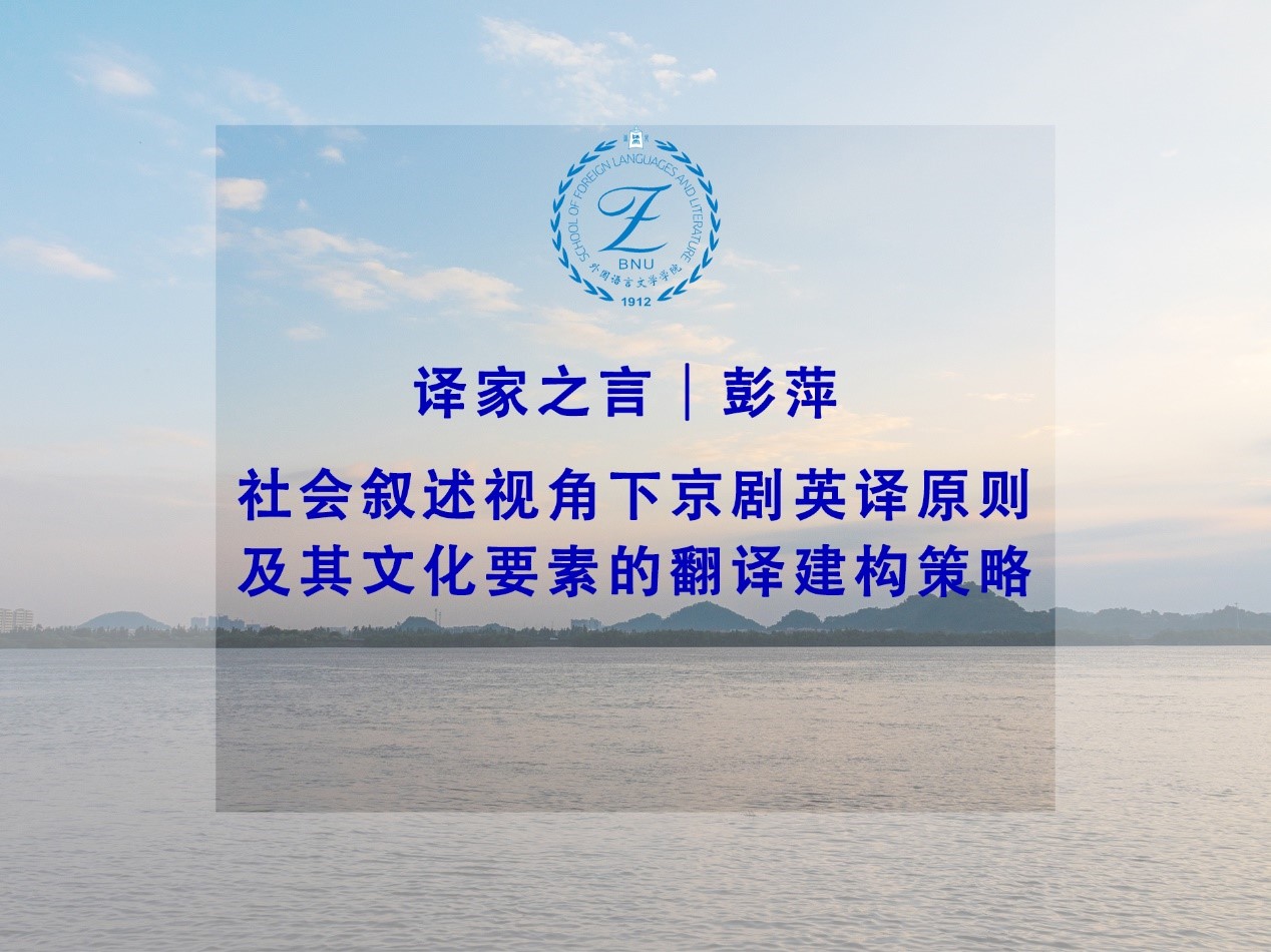 12月9日下午15点至17点,北京外国语大学彭萍教授应外文学院姜莉老师之邀,在台湾色情 后主楼1020会议室作了题为“社会叙述视角下京剧英译原则及文化要素的翻译建构策略”的讲座。