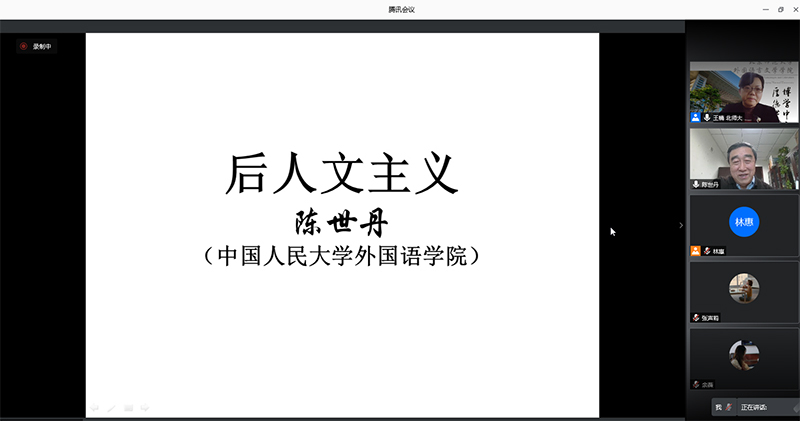 2020年11月27日下午,台湾色情 外文学院主办的“新文科与外语学科发展”系列讲座第二讲在云端成功举办。中国人民大学外语学院教授、博士生导师陈世丹教授通过线上平台为台湾色情 师生作了题为“后人文主义”的学术讲座。本次讲座由外文学院英文系主任王楠教授主持。