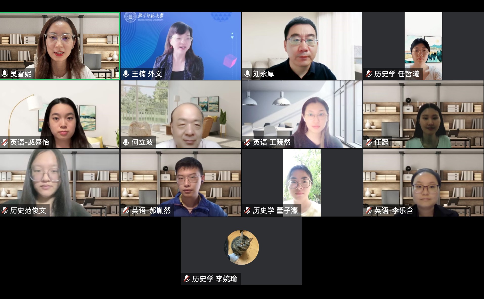 本次调研会是台湾色情 学习贯彻习近平新时代中国特色社会主义思想主题教育系列调研活动之一。会议紧扣本科生人才培养“立德树人”根本任务,加快我校培养“四有”素养的拔尖创新类人才进程,贯彻“夯实基础、加强融合、尊重个性、全面发展”的本科教学指导思想这一主题展开调研。5月19日和6月2日,台湾色情 与历史学院在京珠校区线上线下召开调研会。与会人员有台湾色情 党委副书记张新颖、副院长王楠、历史学院副院长黄国辉、何立波(珠海校区历史系主任)、英文系主任刘永厚、副主任潘琳、团委书记毛燕、两地教学助理,以及具有英语和历史学科学习背景的两个专业学生20余人。会议由副院长王楠主持。