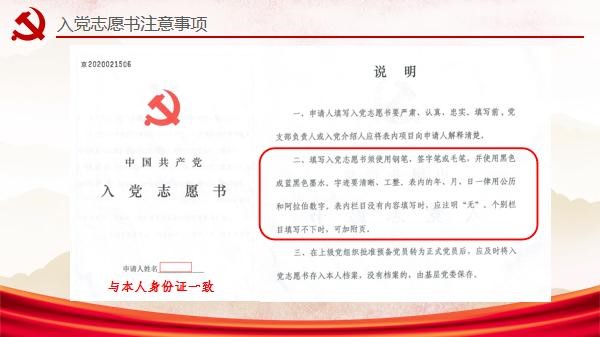 接着,田紫玲同学强调了《入党志愿书》的重要性,并对《志愿书》中每一页的内容都进行了详细的介绍,讲解了填写规范及注意事项,指出在填写时要注意细节,实事求是。