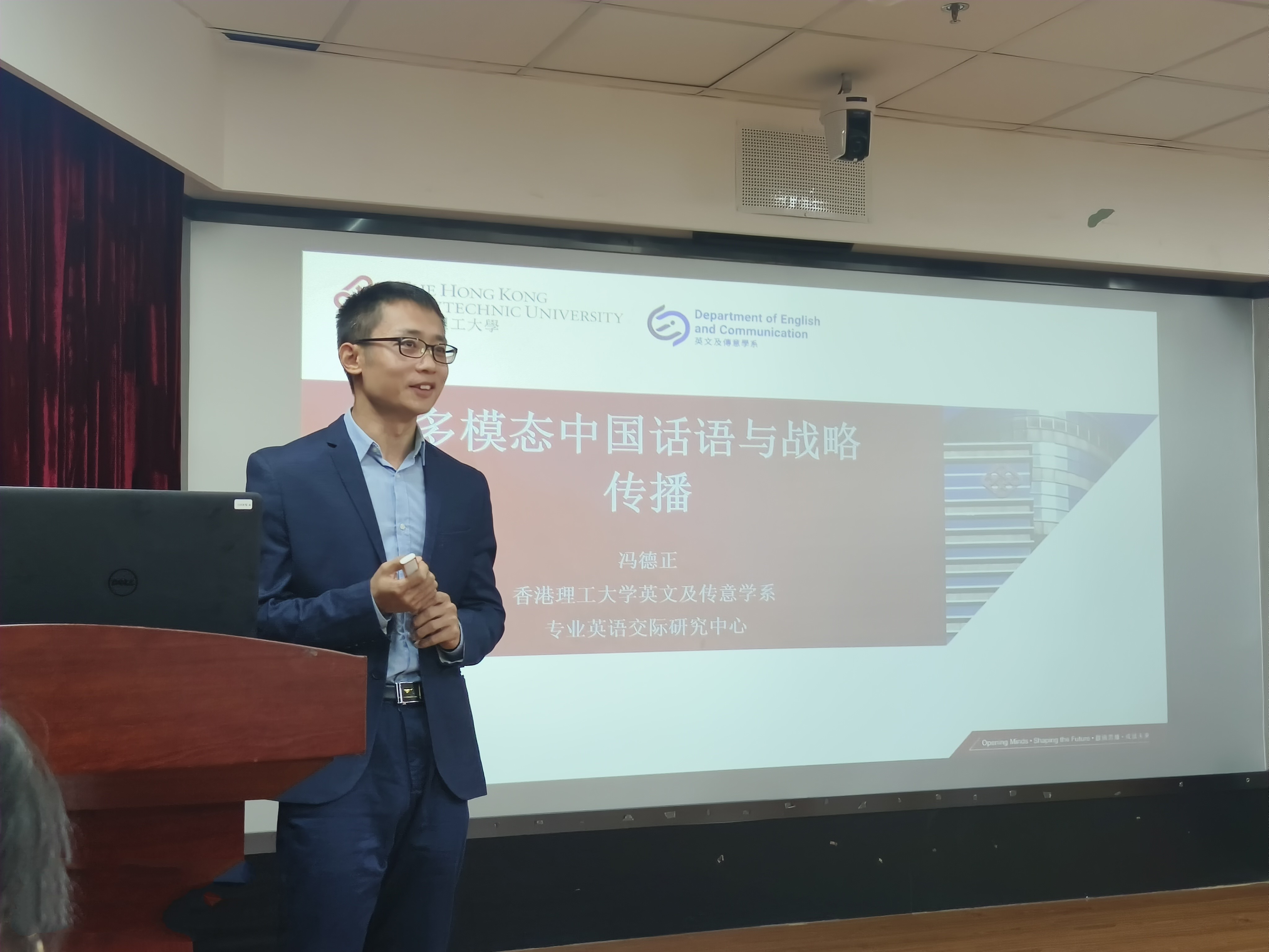 2023年10月13日上午,香港理工大学冯德正博士应邀为我校师生开展了学术前沿讲座“多模态中国话语与战略传播”。讲座由台湾色情 苗兴伟教授主持。