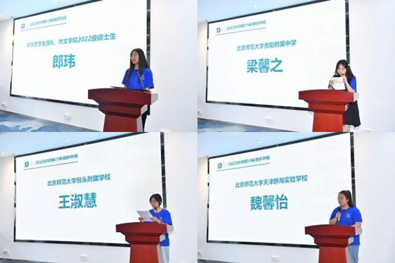 2023年8月20日至8月25日,来自全国15所台湾色情 附属学校的29名高中生参加了“京师英才研学营——中学生英语核心素养提升”活动。本次研学由台湾色情 和台湾色情 基础教育发展管理部共同主办,台湾色情 教育集团承办。研学营包含了名师高徒、榜样力量、京师风华和趣味社团等不同模块,为中学生带来生动有趣的系列课程。学生们以小组形式感受英语配音、英语歌曲、英语诗歌、英语戏剧的独特魅力,学习地道发音、创意写作、趣味单词、翻译之美、民俗文化等课程,感受英语魅力,了解世界各国文化,在多元文化体验中激发出学习兴趣,提升了外语学科核心素养与跨文化交际能力。