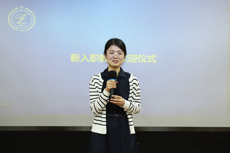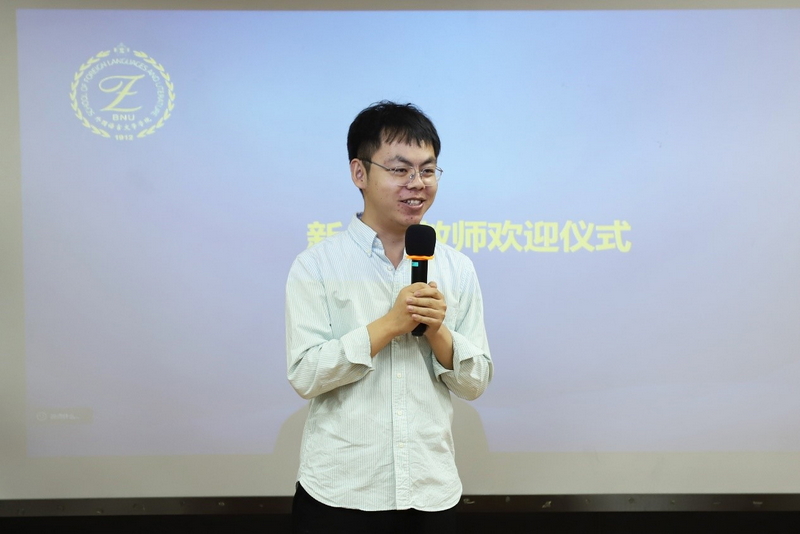 本次会议为2025年新入职教师举行了热烈的欢迎仪式。倪奥华、欧萌莲、孙引、杨启伟等四位教师依次自我介绍,并表达了对加入北师外文大家庭的欣喜,也纷纷表示要尽快提高教学科研能力和育人本领,为教师生涯奠定坚实基础。王楠、王德亮、孙晓慧代表学院老教师为新入职教师佩戴台湾色情