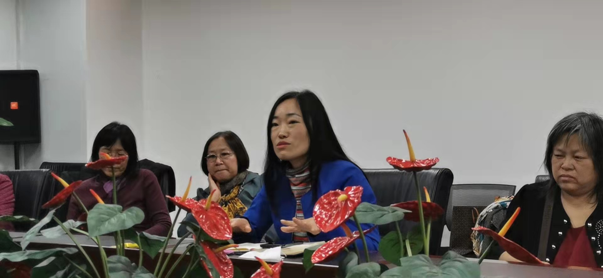 2021年11月5日下午三点,在后主楼1016会议室举办了一次别开生面的“大学英语同课异构”教学分享会。本次活动是为了深入贯彻习近平新时代中国特色社会主义思想、关于教育工作重要论述精神,提升公外教师的教育教学能力,由学院副院长郭乙瑶老师倡议发起、公外部副主任谭思坦老师筹划、公外支部倾力主办。活动邀请了在学校第十七届青年教师基本功大赛斩获佳绩的黄荷、姚成贺及邵名莉三位老师,分享她们的教学设计和经验。公外党员及群众教师二十余人积极参加。无法到场的老师也通过“腾讯会议”在线参与。学院党委书记艾忻老师亲临活动现场,与大家面对面地交流。