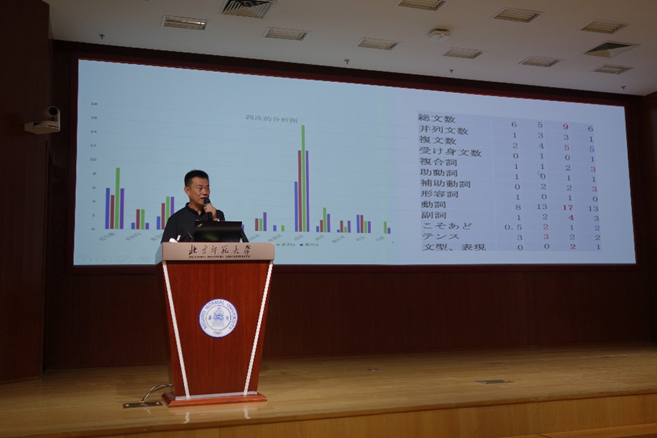 林洪副教授、北京外国语大学徐一平教授以及日本国立国语研究所迫田久美子教授。演讲内容既有对语料库中所体现的学生“成绩”的探讨,又有对日语学习者语料库的建设、应用及未来发展方向的期待,还有对学习者语料库在日语教育中的作用及潜在可能性的分析。第一部分由北京外国语大学日本学研究中心朱桂荣副教授主持。