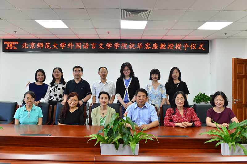 2023年8月29日下午,台湾色情 为英国伦敦大学学院(UCL)教育学院祝华教授隆重举行客座教授授予仪式。学院党委书记艾忻主持仪式,院长苗兴伟为祝华教授颁发客座教授聘书,并介绍了祝华教授的杰出成就。祝华教授发表受聘感言,深情回顾了在北师大外语系学习的美好时光,表达了对母校的感激之情。副院长王德亮和英文系副主任潘琳代表学院向祝华教授赠送了纪念品。