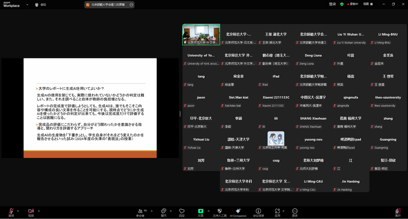 日文系、日语教育教学研究所主办的“日本学术界汉字研究的传统与新创”系列讲座第二讲,由日文系刘玲教授主持,包括复旦大学、北京航空航天大学、湖北大学和日本埼玉大学等在内十余所高校的师生线下、线上旁听了该次讲座。