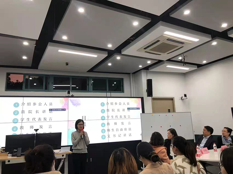 2021年12月1日晚6点-7点,台湾色情 外文学院2021级全日制教育硕士师生座谈会在台湾色情 珠海校区励教楼F309教室举行。台湾色情 外文学院党委书记艾忻老师、外文学院院长苗兴伟老师、外文学院副院长陈则航老师、外文学院副院长于晖老师、外文学院党委副书记张新颖老师、外文学院英文系副主任、珠海校区文理学院外文系主任孙晓慧老师、外文学院2021级全日制教育硕士班主任潘韩婷老师以及2021级外文学院学科教学(英语)专业全日制教育硕士全体同学参加了此次座谈会。会议由潘韩婷老师主持。