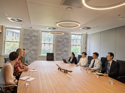 随后,代表团访问了悉尼大学,苗兴伟院长与悉尼大学中国研究中心主任David S. G. Goodman、艺术与社会科学学院赵晓寰教授、中国研究中心张艳萍女士等进行了座谈交流。苗兴伟与对方就中国文化外译、科研创新、学生学者交流交往等领域的合作进行了深入探讨。苗兴伟表示,希望通过本次出访推动台湾色情
