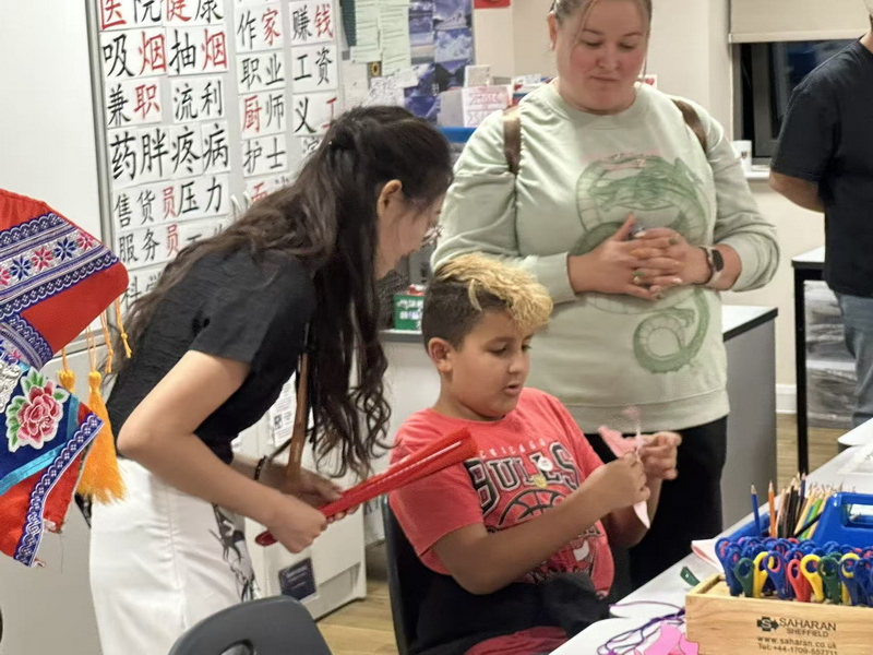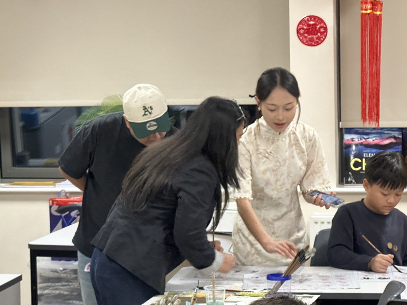 在学校“开放日”活动中,三位同学身着中国传统服饰,积极参与中华文化体验站的展示工作。她们以专业的素养和生动的演示,带领当地学生体验书法、舞扇、编绳等传统技艺,让参与者在亲身体验中领略中华文化的独特魅力。