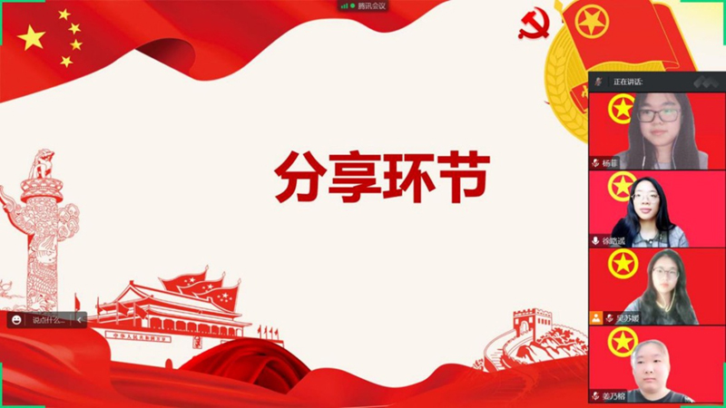 学院2020级学硕党支部书记刘颀同学在交流发言中说:“作为一名师范生,努力成为党和人民满意的‘四有’好老师是我一直以来的目标和理想。在师大度过的这段难忘求学岁月里,受师长之影响,感国家之勉励,当秉承前人之志,砥砺品格,努力在‘为党育人,为国育才’的伟大事业中,贡献微薄之力。”