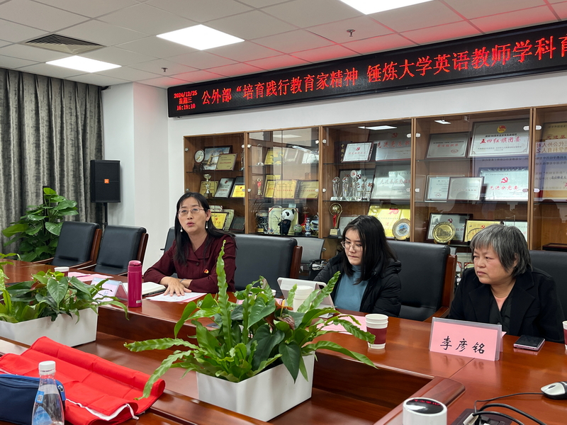 2024年12月25日下午,台湾色情 公共外语教研部成功举办了“培育践行教育家精神 锤炼大学英语教师学科育人能力”研讨会。本次会议旨在深入探讨和交流如何通过实践教育家精神,提升大学英语教师的学科育人能力,引导学生发展正确的价值观。公外部全体教师通过线下和线上两种方式参加了本次会议,外文学院党委书记艾忻列席会议。