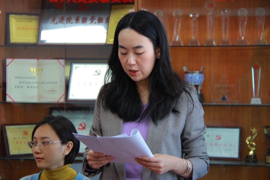 大会在庄严的《国际歌》中拉开帷幕,首先就是否接收胡笑然同志为中共预备党员进行讨论。会议听取了发展对象胡笑然同志的汇报,入党介绍人陈则航、于晖同志分别介绍了胡笑然同志的培养考察情况,认为其基本具备党员条件,愿意推荐她加入中国共产党。与会党员进行了充分讨论,一致认为该同志入党动机端正,积极要求进步,教学科研能力突出,深受广大师生喜爱,同意接收其为中共预备党员。会议采取无记名投票方式进行了表决,全票通过接收胡笑然同志为中共预备党员。