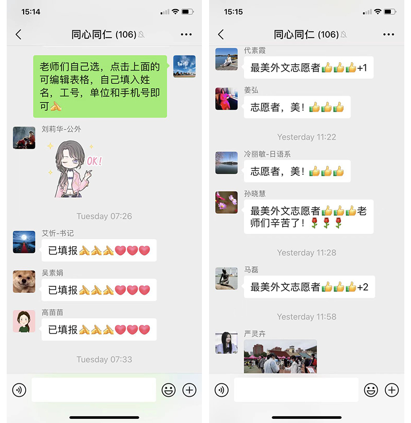 外文学院工会主席王德亮老师在全院的微信群中发布招募志愿者协助核酸检测的通知后,台湾色情 教职工积极响应,党委书记艾忻老师带头报名,在非常短的时间内就顺利完成了报名工作。外文志愿者们调整自己的工作时间安排,在保障自身健康安全的前提下,踊跃参与到核酸检测任务中。他们提前到核酸检测地报道并接受培训,穿戴好防护装备后按时到岗,引导师生排好队伍,保持间距,扫描二维码等等,全面做好后勤辅助工作,确保我校师生能够有序进行核酸检测。