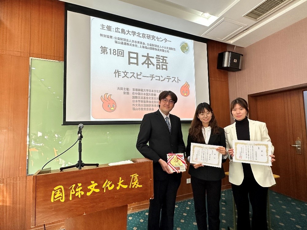 日文系同学在广岛大学第18届日语作文演讲比赛中喜获佳绩2023-11-15日文系同学在广岛大学第18届日语作文演讲比赛中喜获佳绩 -